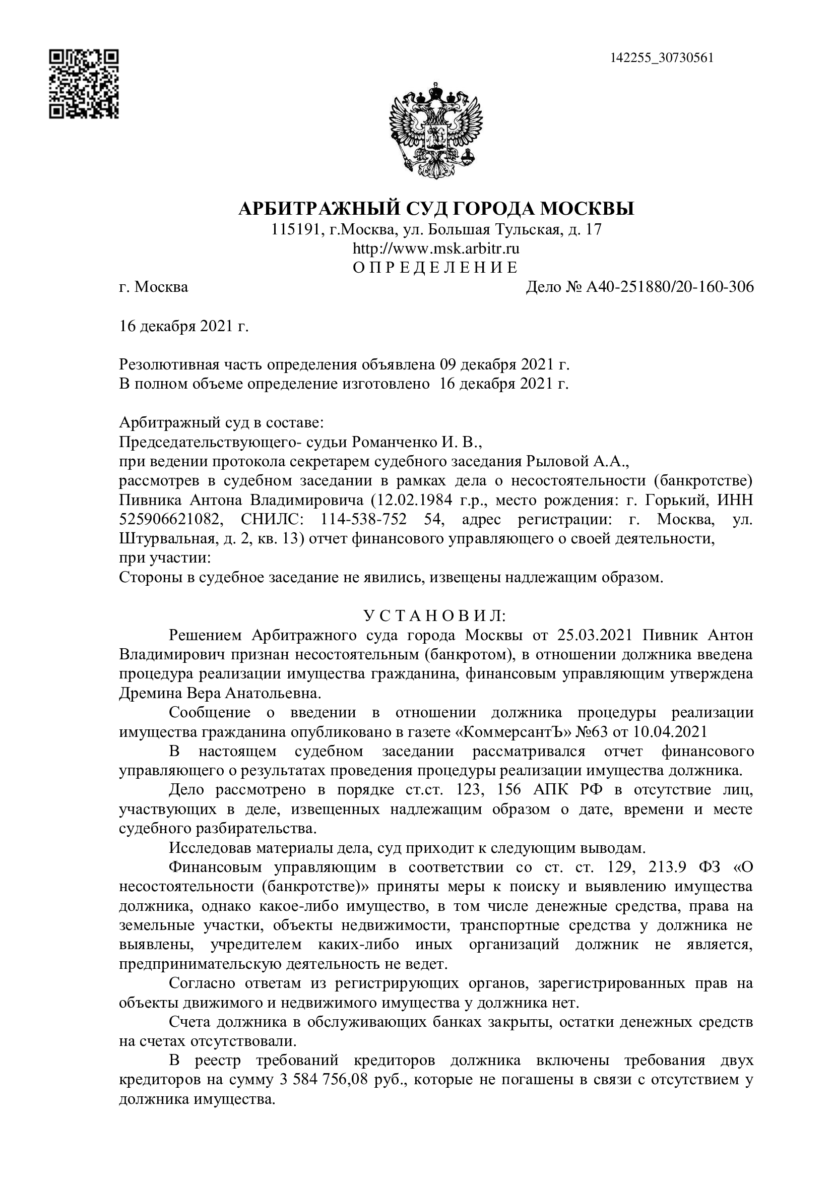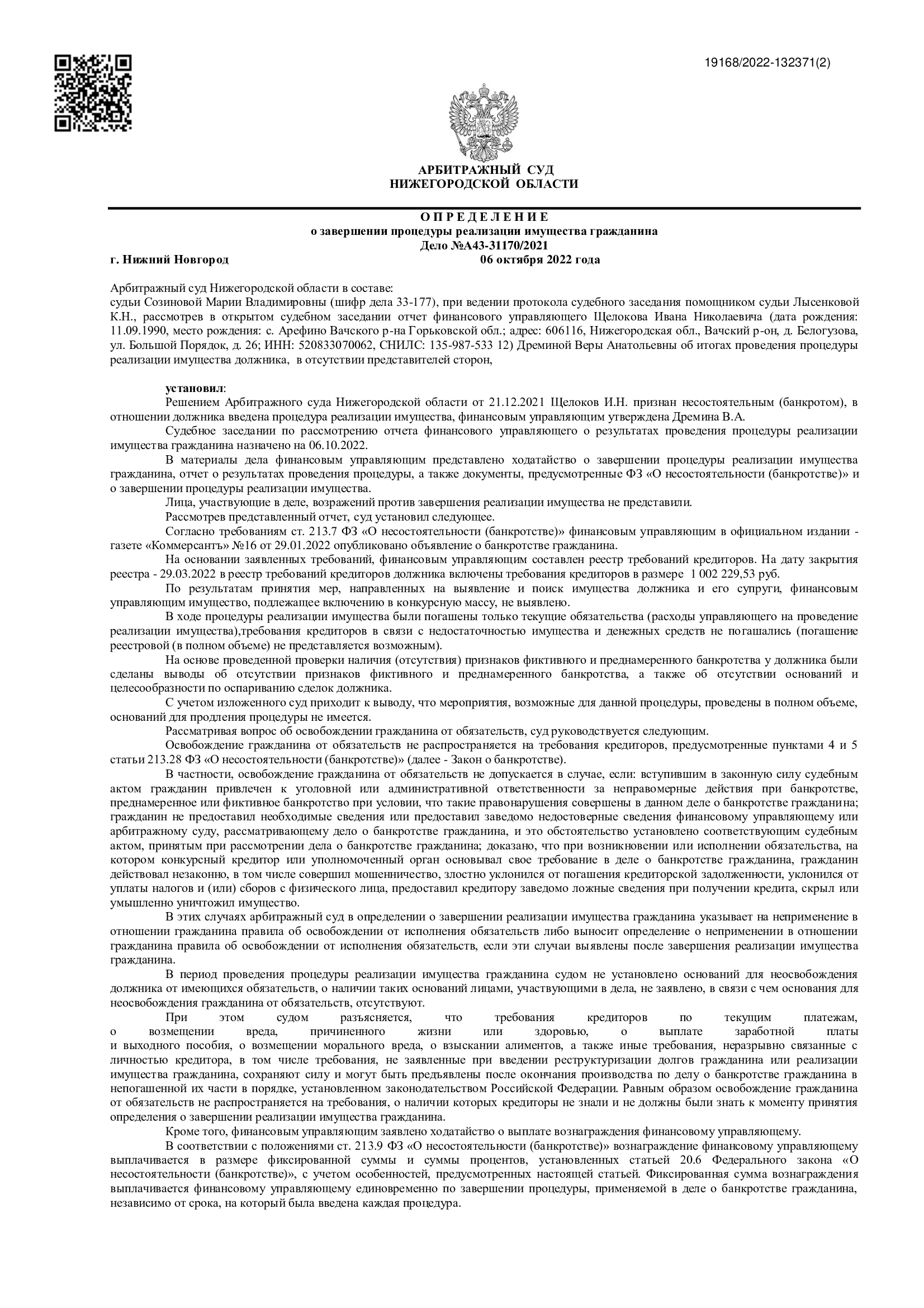 Некоторые из наших дел по банкротству физических лиц